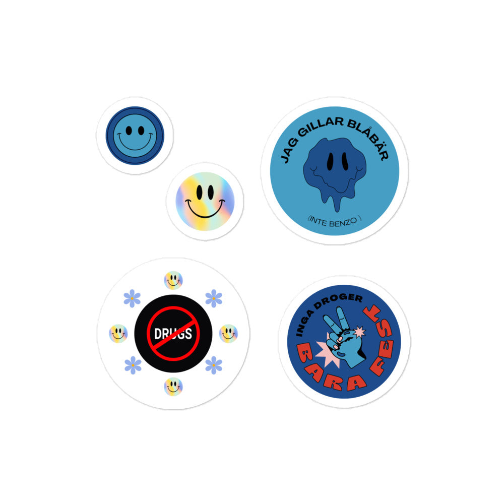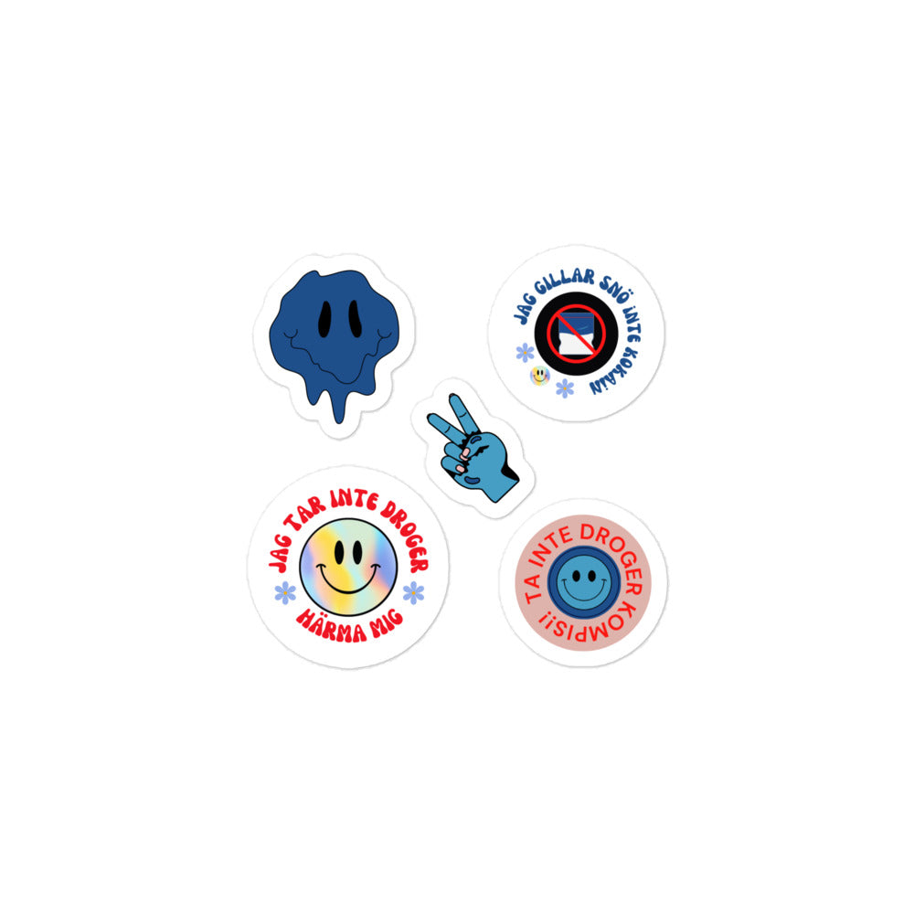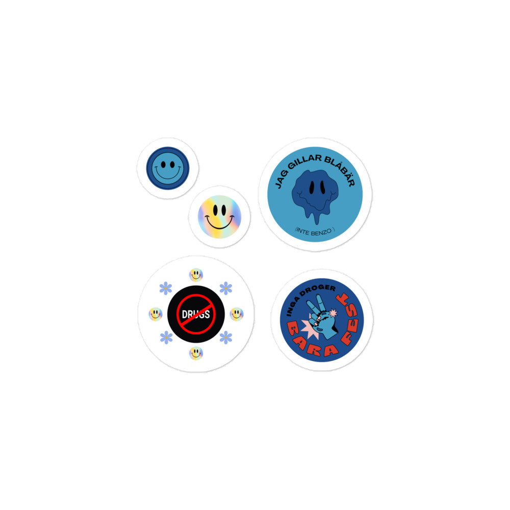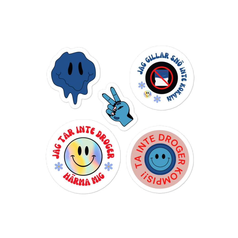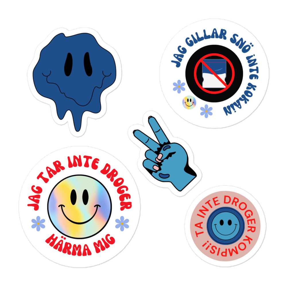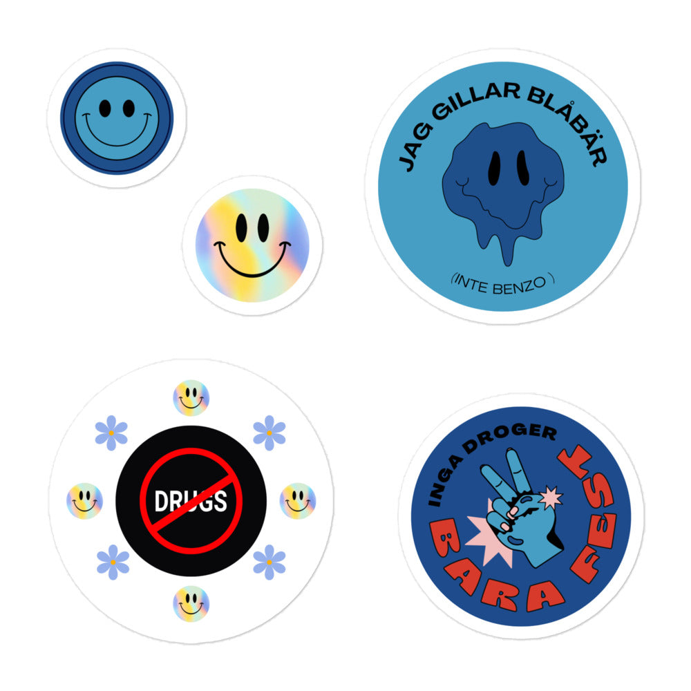 Klistermärken, blå ikoner emot droger